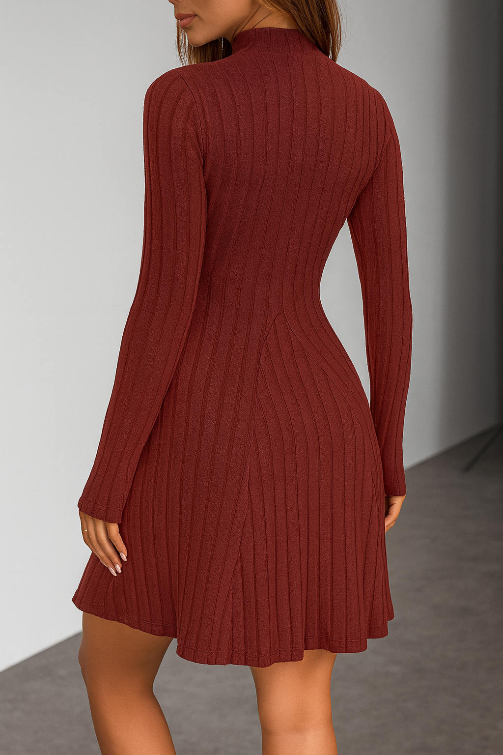 Crafted with a refined ribbed knit texture, Ceryn™ sculpts and smooths the figure without sacrificing comfort. The mock neckline and long fitted sleeves add sophistication, while the A-line hem brings graceful movement to every step. Whether styled casually for daytime or elevated for evenings, this dress adapts effortlessly to your lifestyle.