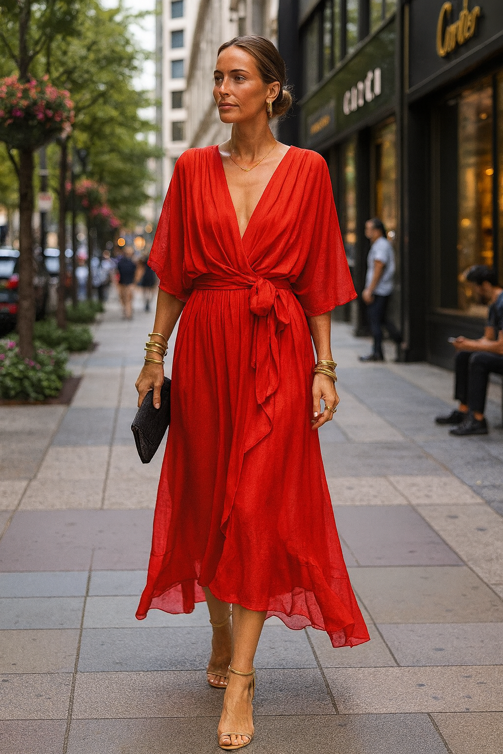 Discover the Monica™ Chiffon V-neck Dress, perfect for those looking for airy elegance and absolute comfort. Made from a light and flowing chiffon, this dress elegantly follows your silhouette while offering a feeling of softness and freedom. Ideal for special occasions or sunny days, it combines sophistication and femininity.